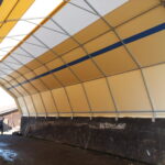 Hier ein weiteres Rundbogenzelt aus unserer Fertigung. Es dient als Unterbringungsmöglichkeit für Rinder. Dafür wurde ein ehemaliges Silo umgerüstet.